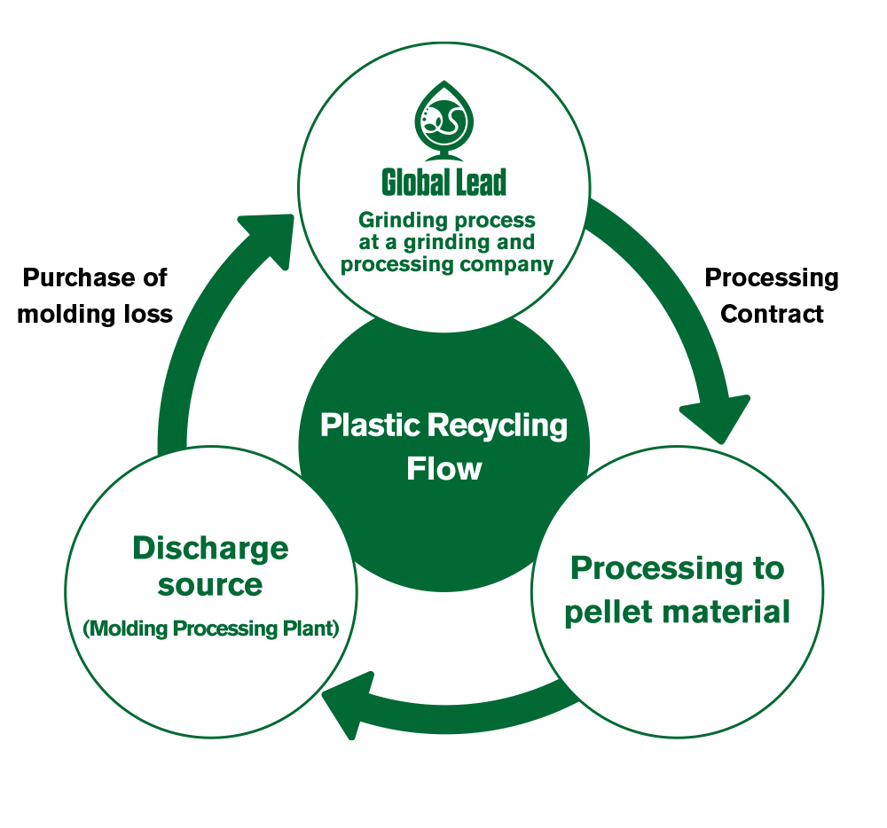 We are mainly engaged in the recycling of plastics in Japan. We purchase molding loss from the source (plastic molding factory), crush it, consign the processing to raw material processing companies, and sell the recycled pellets (raw material) to molding processing companies again. We have a number of domestic and overseas customers. We also export plastic products, textiles, recycled plastic materials, agricultural materials (fertilizer and feed), and other products to overseas markets.